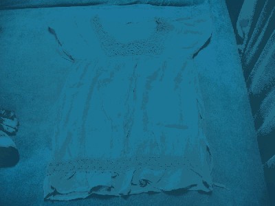 koszula z rozcięciem na cyc, rozmiar S, 45 cm pod pachami, 48 w mniej-więcej pasie, 90 cm długości, niebieska