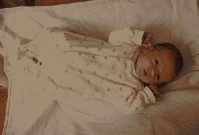 Z wyglądu rzeczywiście bardzo przypomina Stacha w tym wieku, ale tylko jak śpi. Jak otworzy oczy, jest całkiem inny.