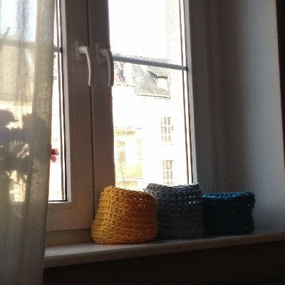Takie koszyki zrobiłam, z grubego, miękkiego, kolorowego sznurka. Każdy z takiej samej ilości, ale są dość plastyczne - nie super identyczne. Można ich użyć jako osłonki na doniczkę, albo koszyk do przechowywania różnych niewielkich rzeczy. Na życzenie może zrobić z rączką - wtedy będą trochę płytsze. W tej chwili mam 3 sztuki, jak na zdjęciu.