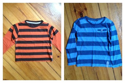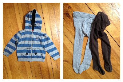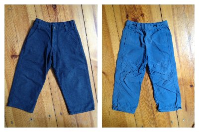 Spodnie 3-4 lata, lewe wizytowe bardziej 8zł; prawe z cienkiego materiału 5zł