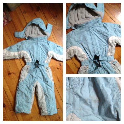 Kombinezon zimowy coolclub 104 (Emil nosił jeszcze tej zimy), ma plamkę ale ona chyba się spierze w lepszym proszku. Bardzo praktyczny, gumki grube pod nogawką można naciągnąć na buty i śnieg nie wpada do środka ;) 25 zł