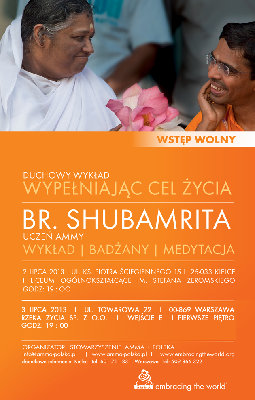 2 i 3 lipca bieżącego roku będziemy mieli zaszczyt gościć w Polsce Swamiego Shubamritę Chaitanya. Swami Shubamrita - jeden z najbliższych uczniów Ammy, poprowadzi programy w dwóch polskich miastach; 02.07 w Kielcach oraz 03.07 w Warszawie (godz. 19.00, wstęp wolny). W programie spotkania wykład pt. "Wypełniając Cel Życia". Swami poprowadzi również medytację oraz zaprosi do wspólnego śpiewania badżanów.