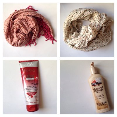 Chusta i szal springfield, każdy po 12 pln, balsam wyszczuplający 10 pln (prawie cały), balsam samoopalający (ok 3/4 opakowania) 15 pln