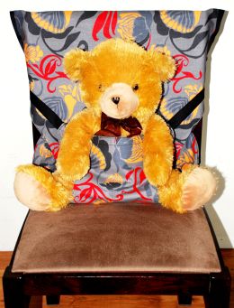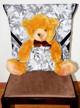 Oto krzesełko BABY GooGoo CHAIR, które jest uszyte z bawełnianego materiału, zapinane z tyłu na 2 regulowane taśmy z klamrami.
