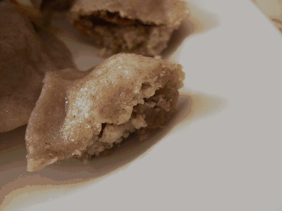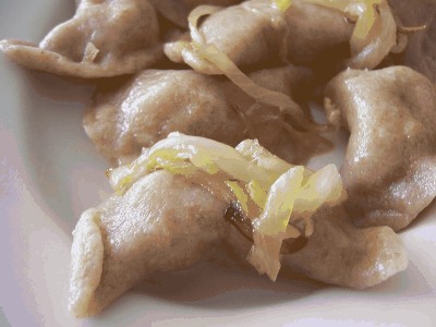 pierogi nadziewane właśnie tym tofu + wędzone tofu + duszona cebula+ przyprawy