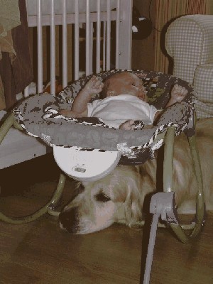A tak Sammy pilnuje Olafa - zawsze jest blisko niego Ale nie wykazuje agresji czy zaborczości nawet wobec obcych, jest zawsze spokojny.