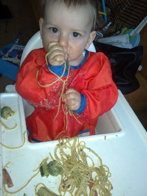 Mam podobne odczucia. Zawsze mnie zastanawia to jak szeroko jest rozpowszechnione w społeczeństwie przekonanie o braku instynktu samozachowawczego u dzieci. Jak idzie w kierunku schodów to na pewno po to żeby się z nich rzucić, jak bierze do ręki widelec to na pewno, żeby wsadzić sobie w oko, jak nóż to po to, żeby sobie odkroić rękę :-P ]:-> No wiadomo, że trzeba być ostrożnym, ale jak już dziecko przestaje bezładnie wymachiwać łapami i załapie, że teraz jemy i staramy się trafić tym co leży na tacce albo widelcu do buzi to już jest mała szansa trafienia w oko i sztućce nawet te dorosłe są ok.