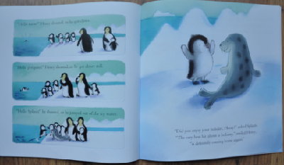 "Henry's Holiday" - o pingwinku, który miał dosyć zimy i zimna i wybrał się na wakacje, jednak wkrótce zatęsknił za domem, stan bdb, 16zł nowa