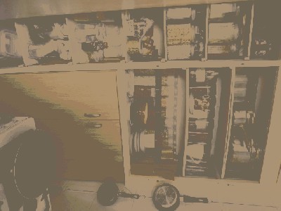 Tu szafka z wyjetymi drzwiczkami a obok zamykana