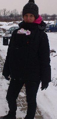Myślałam, że jeszcze tej zimy ponoszę ale moje dziecię woli już biegać na własnych nóżkach więc...