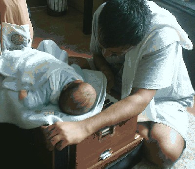 Super zaczynał z nimi, jak jeszcze byli takimi malutkimi kokonikami, to kładł ich na swoja harmonium i gral :)