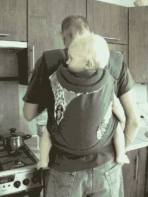 Mój syn uwielbia nosidło (mamy od Alci), jak je zobaczy to ściąga z kanapy i się owija! I nazywa je "pamba" czyli panda (bo mamy na nim dwie słodkie tulące się pandy).