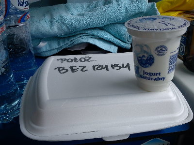 gratisowo dorzucam jadełko wege szpitalne, wywalczyłam nawet bez ryby Kupowane w przyszpitalnej budzie ''gofry, kebab królewski'' Bo w swojej kuchni poza parówkami, kartoflanką, i marchwianką na rybie to nic bezmięsnego poza chlebem i kiszoną chyba nie uświadczysz