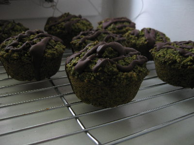 Popełniłam zielone po raz drugi, tym razem mniej słodkie. I chyba znów będę musiała sama zjeść całą blaszkę, bo J. stwierdził, że szpinak na słodko to jak kobieta z brodą i odmówił degustacji ]:->
