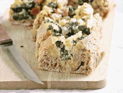 Cebulę szklimy na oleju, dodajemy szpinak, całość dusimy dopóki szpinak się nie rozmrozi. Gdy wystygnie odciskamy z niego nadmiar płynu. Dodajemy pomidory pokrojone w dość drobną kostkę.
