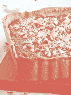 Z podanych składników wyrabiamy dość gładkie ciasto, które rozwałkowujemy na grubość ok. 3mm i wykładamy nic formę. Chłodzimy w lodówce co najmniej 30 minut, można je także zamrozić. Po schłodzeniu ciasto podpiekam 10 minut w 190 stopniach obciążone fasolą żeby się nie wygięło.