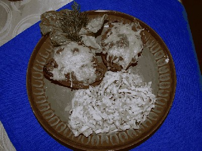 Ewa, dokładnie nie pamiętam, bo foto robione we wrześniu, ale wygląda mi to na zwykłą białą kapustę z marchewką, natką pietruszki i olejem :->