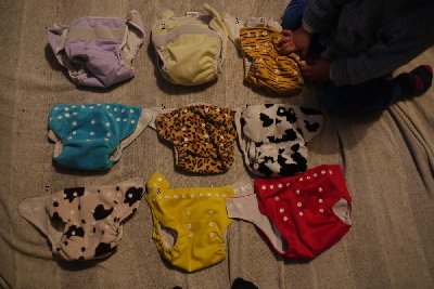 3 i 4 KaWaii Green Baby (chyba też made in usa, ale głowy nie dam)- trochę lepsze niż chinki moim zdaniem, PUL minkee, w środku bambus chyba. 10 zł/sztuka