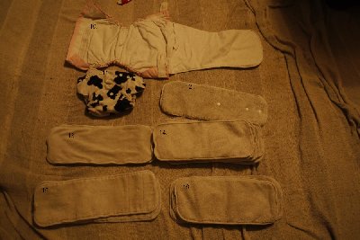 14 cienkie wkłady, z jednej strony bambus z drugiej mikrofibra, bambus leciutko różowy (zafarbował się w praniu) 2zł/ szt. jest ich 8