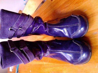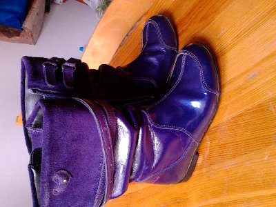 Fioletowe, lakierowane. Założone kilkanaście razy. W bardzo dobrym stanie.