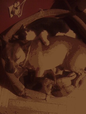 Jak ja bym chciała, żeby moja kotka tak przytulała się do naszych suk. No, ale moje zwierzaki to wszystkie jakieś takie mocno niezależne :->