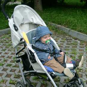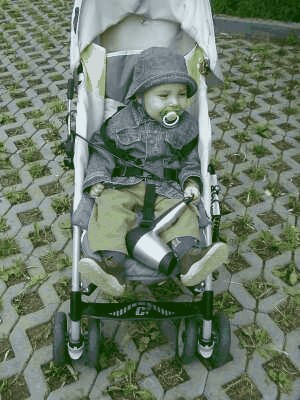 Wojtek - prawie 11 miesięcy, raczkuje niezdarnie, przeważnie w poszukiwaniu swojej wciąż przemieszczającej się mamy. Gdera przy tym okropnie, a jak już dotrze, to wspina się w górę, rozpaczliwie chwytając się rodzicielskich spodni.