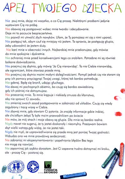 Tekst który wklejam i wysyłam ludziom kiedy i gdzie to możliwe, i myślę że naprawdę warto się z nim zapoznać...pomimo tego, że powstał w czsach kiedy nasi dziadkowie a czasem i pradziadkowie byli młodymi rodzicami...